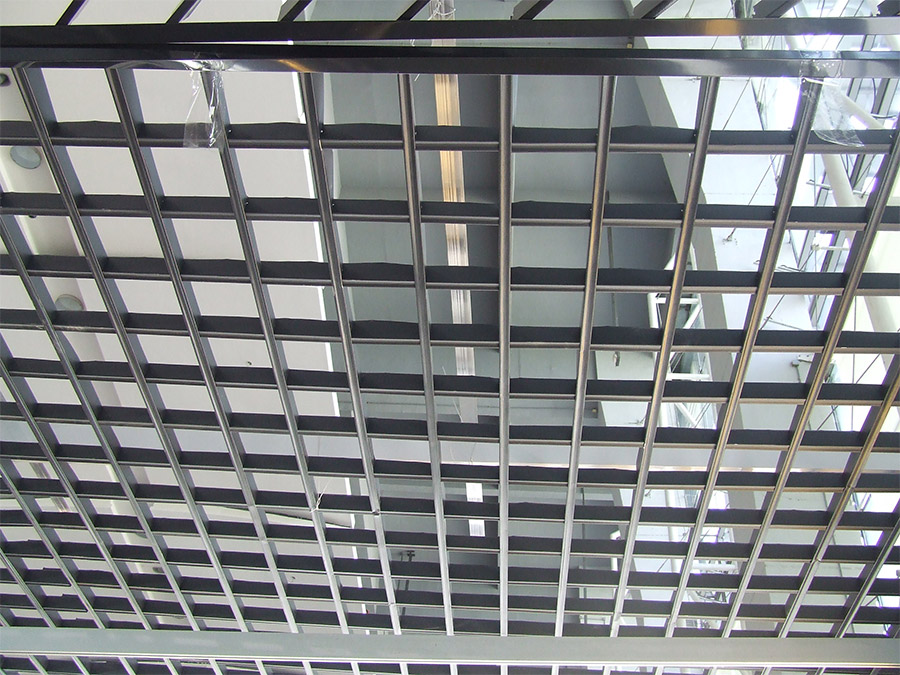 鋼格板吊頂可廣泛應用于印刷車間,工業廠房,展覽中心,大型體育館,商業會展,車站,碼頭,機場等商業及工業等的建筑吊頂。鋼格板吊頂是具有一定的承載能力并且具有裝飾性的鋼格柵板產品,一般采用普通Q235低碳扁鋼、不銹鋼、黃銅板、鋁板經開槽(孔)、插接、焊接等工序制造而成。其焊點牢固、孔距 均勻、網面平整。可以說即是工業品又是工藝品。